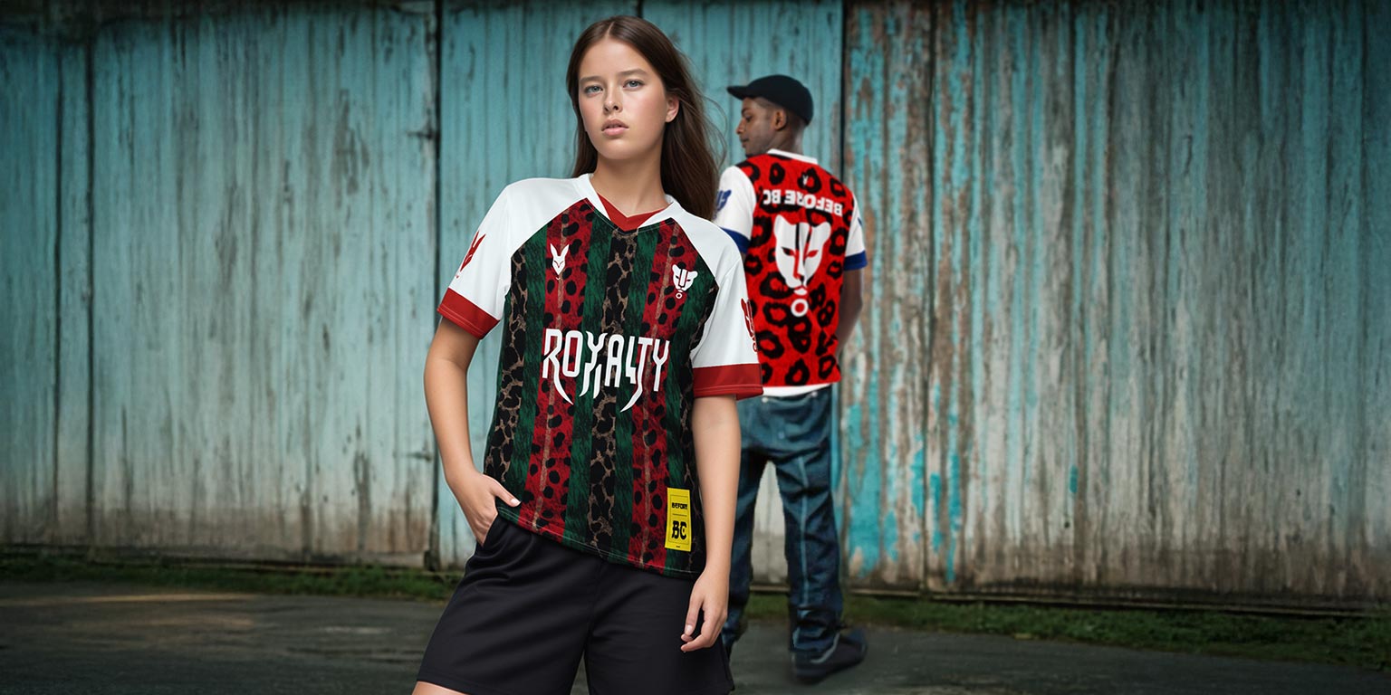 Striped Leopard Print Football Jersey with White Sleeves – Bold Heritage Royalty